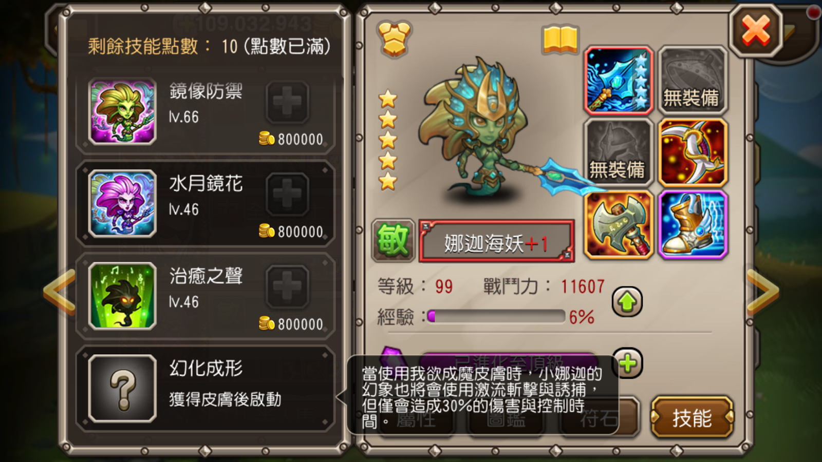 當使用我欲成魔皮膚時,小娜迦的幻象也將會使用激流斬擊與誘捕,但僅會造成 30% 的傷害與控制時間。